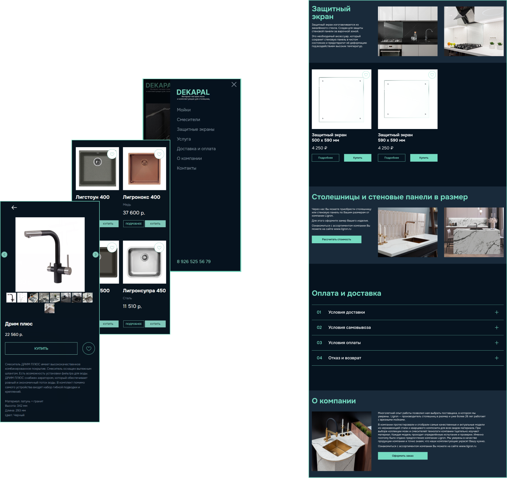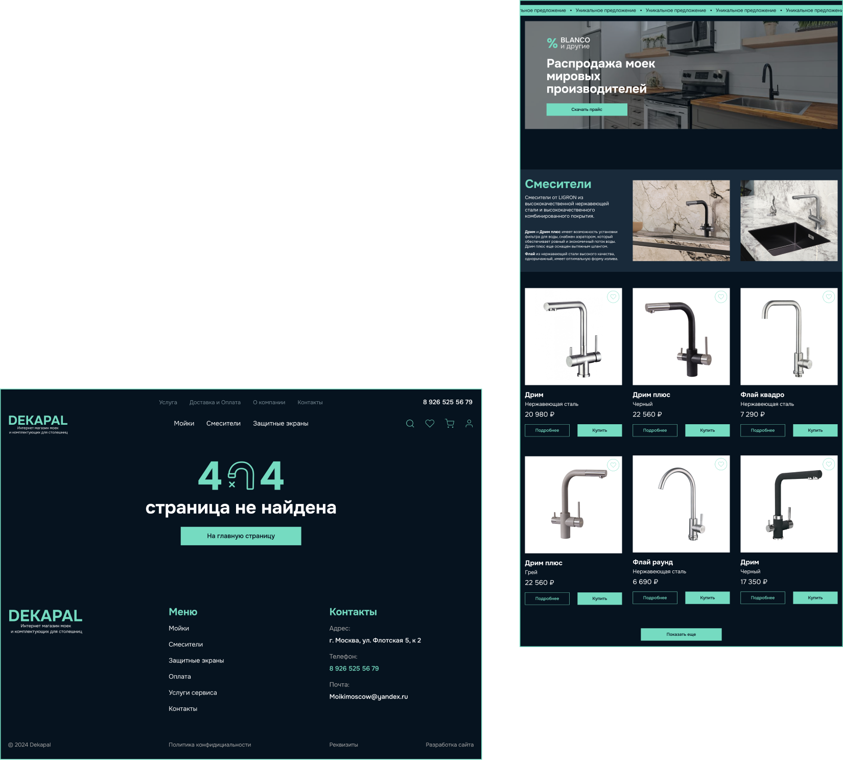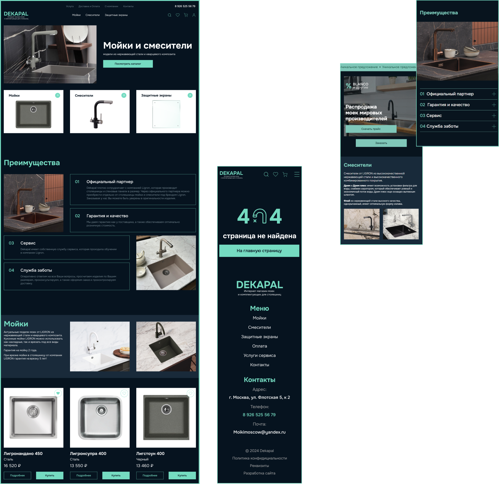 Пожеланием клиента было создать лаконичный сайт, отразить богатый выбор моек, показать экспертизу их компании и качество предлагаемой продукции.